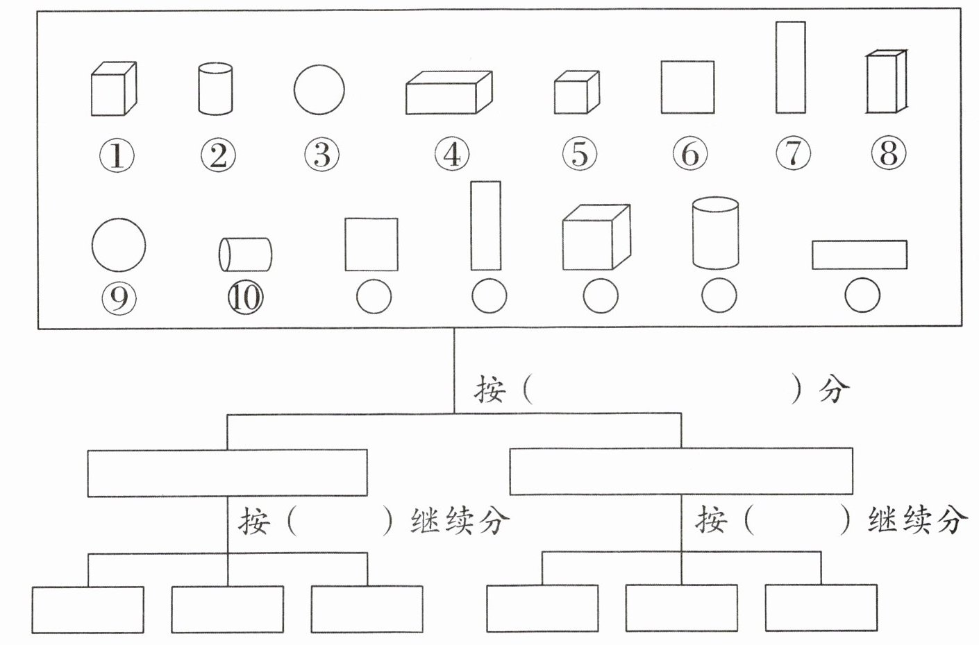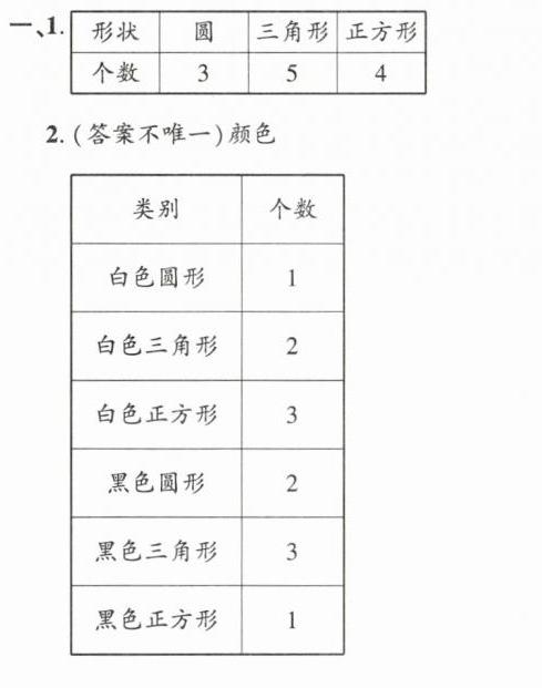 1. 先按卡片形状分类,再把结果记录在下表中。