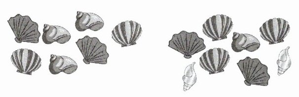 (2)螺旋(luó xuán)贝壳有6个,扇(shàn)形贝壳有几个?