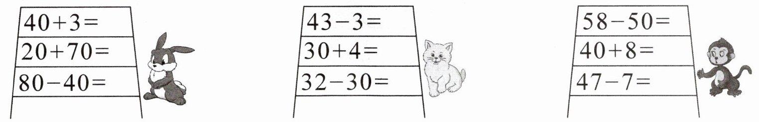 $40+5\bigcirc50+4$ $79-70\bigcirc59-50$ $85-5\bigcirc76-6$