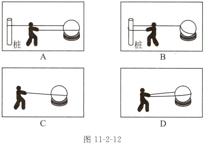 12. [模型构建](2024盐城)如图11-2-12所示挪动球形石墩的方法中,最省力的是 ()