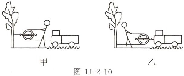 10. (2023淮安模拟)一辆汽车不小心陷进了泥潭中,按如图11-2-10甲、乙所示的两种方法安装滑轮,均可将汽车从泥潭中拉出。若汽车所受阻力为800N,则图甲中人的拉力至少为____N,图乙中人的拉力至少为____N,其中比较省力的是图____。(不计绳重、滑轮重及滑轮摩擦)