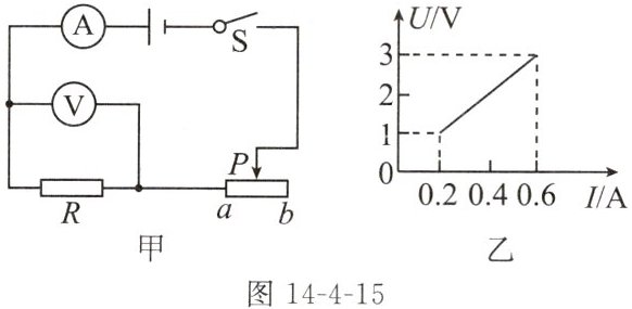 12. (2023扬州广陵区月考)如图14-4-15甲所示,电源电压保持不变,闭合开关时,滑动变阻器的滑片P从b端滑到a端,电压表示数U与电流表示数I的变化关系如图乙所示。请你计算滑动变阻器的最大阻值是____Ω。