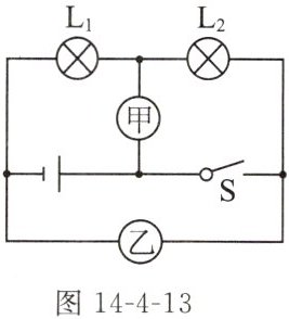 9. (2024南京校级月考)如图14-4-13所示,电源电压保持不变,开关S闭合后,灯$L_{1}$、$L_{2}$都能正常工作,甲、乙两个电表的示数之比是2:3,下列说法正确的是()