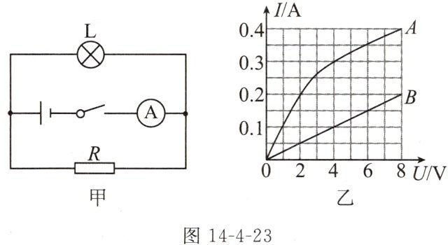 7. (2023南通崇川区月考)小灯泡L和定值电阻R接在如图14-4-23甲所示的电路中,两者的I-U关系图像如图乙所示,下列说法中正确的是 ()