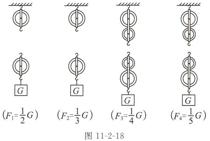 6. 如图11-2-18所示的装置中,忽略滑轮自重、绳重和摩擦,按要求画出滑轮组的绕线方式。链接例4方法指导