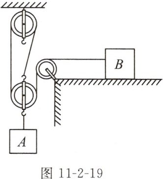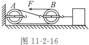 4. 用如图11-2-16所示的滑轮组拉动物体,装置中A是____滑轮,B是____滑轮。物体的重力为2000N,物体匀速移动2m,物体与桌面间的摩擦力为900N,则绳子自由端移动了____m,绳子