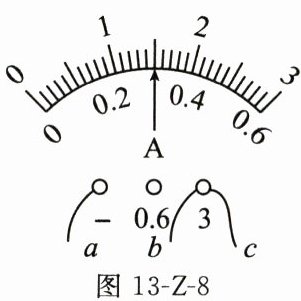 9. (2023 苏州工业园区期中)在使用电流表测量电路中电流的实验中,如图 13-Z-8 所示,只有电流表接入电路中的一部分可见,下列说法正确的是 ()