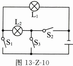12. 如图 13-Z-10 所示电路,要使灯 $ L_1 $ 和 $ L_2 $ 串联,应只闭合开关______;要使灯 $ L_1 $ 和 $ L_2 $ 并联,应闭合开关______;不能同时闭合开关______,否则会造成电源短路。