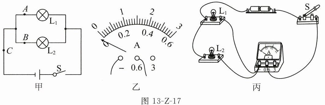 (2)若在某次测量时,按图 13-Z-17 甲连好电路闭合开关前,发现电流表指针位置如图乙所示,则应该______;排除问题后闭合开关,发现指针又偏向图乙位置,其原因是______。