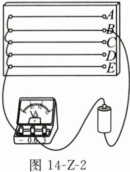 3. 如图14-Z-2所示是探究影响导体电阻大小因素的实验装置(导线的数量及连接可改变),演示板上的金属丝长短粗细都相同,A、B、C都是镍铬丝,D是铜丝,E是铁丝,下列说法正确的是 ()