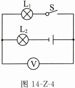 5. 如图14-Z-4所示的电路中,电源电压为4.5V保持不变,$L_{1}$、$L_{2}$是小灯泡,当开关S闭合时,电压表的示数为1.5V,忽略温度对灯丝电阻的影响,则 ()