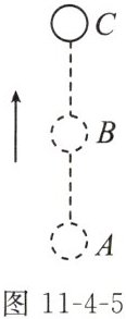 9. (2023镇江期中)一小球由A点竖直上抛,经过B、C两个位置,且$AB= BC$,如图11-4-5所示,小球克服重力在AB、BC段做功分别为$W_{AB}$、$W_{BC}$,功率分别为$P_{AB}$、$P_{BC}$,则 ()