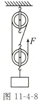 12. 如图11-4-8所示,工人用240N的拉力在15s的时间内,将重为600N的建筑材料提升到6m高的楼顶上,则绳子自由端移动了______m,拉力做的功是______J,拉力做功的功率是______W。链接例4易错警示