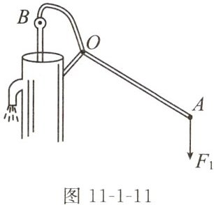 11. (2023扬州邗江区一模)如图11-1-11所示是一种活塞式抽水机的示意图,手柄BOA可看成一个杠杆,画出图中手柄所受力$F_{1}的力臂l_{1}和阻力F_{2}$。