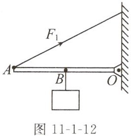 12. 如图11-1-12所示的轻质杠杆处于平衡状态,请作出动力$F_{1}的力臂l_{1}和杠杆所受阻力F_{2}$的示意图。