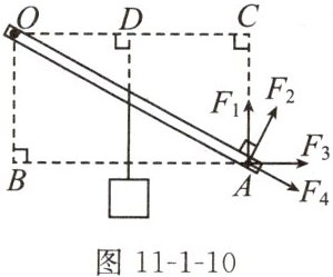 10. 如图11-1-10所示,有一杠杆可绕O点转动,在杠杆上某点挂一重物,现在A点施加动力$F_{A}$。