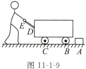 9. (2022扬州江都区期末)超市有购物用的手推车,如图11-1-9所示,若货物在车内摆放均匀,当前轮遇到障碍物A时,你应向____(选填“上提”或“下按”)扶把,这时手推车可以视为杠杆,支点是____(填字母);当后轮遇到障碍物A时,你应向____(选填“上提”或“下按”)扶把,这时支点是____(填字母)。