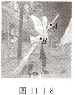 8. 图11-1-8为环卫工人扫地时的情景,扫地时保持左手在A点的位置不变,用右手在B点施力。此时扫把可视为____,____点为支点,右手对扫把施加向右的动力,那么阻力是____(选填“扫把对地面的摩擦力”或“地面对扫把的摩擦力”),方向____(选填“向左”或“向右”)。