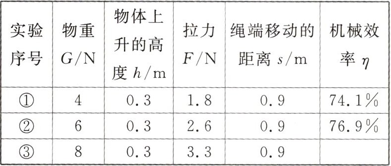 (3)第③次实验中滑轮组的机械效率是______%(结果精确到0.1%)。
