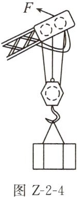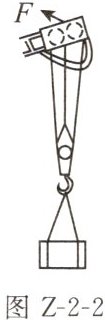 2. (2023 无锡滨湖区校级二模)起重机吊臂上的滑轮组如图 Z-2-2 所示。在匀速起吊重 $ 2.4 × 10^{4} $ N 的物体时,物体在 5 s 内上升了 5 m,此过程中有用功为______J,钢丝绳移动的速度为______m/s;若滑轮组的机械效率为 80%,拉力 $ F $ 大小为______N,克服绳重、摩擦所做的功为 $ 2.4 × 10^{4} $ J,则动滑轮重______N。