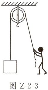 3. (2024 南通)如图 Z-2-3 所示,工人用 330 N 的拉力,使用定滑轮将质量为 30 kg 的物体 6 s 内匀速吊起 3 m,g 取 10 N/kg。求: