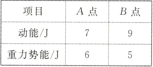 11. [科学推理](2024南京秦淮区校级月考)把一个石块竖直向上抛出,运动到最高点并下落。A、B是石块运动轨迹中的两个点,石块在这两点的动能和重力势能如下表所示,则石块在B点处的运动方向可能的情况是 ()
