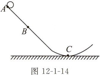 8. 如图12-1-14所示,小球从光滑轨道最高点A由静止下滑,经过某一点B,到达轨道最低点C,再沿轨道上升并飞出,到达空中最高点D(D点未画出)后落地。下列判断不正确的是 (