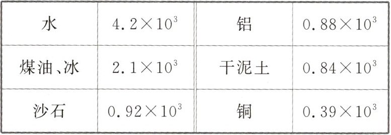 $| 水 |$ 4.2×10^{3} $| 铝 |$ 0.88×10^{3}