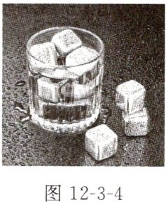 12. [跨学科实践](2024徐州沛县模拟)如图12-3-4所示,有人把不锈钢块放在冰箱冷冻后,放进杯子中给饮料降温。你认为相同质量的不锈钢块和冰块相比,哪种物体的降温效果更好? 为什么$? (c_{冰}>c_{钢})$