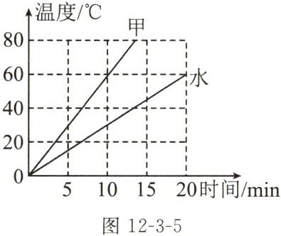 9. (2024苏州吴江区一模)用两个相同的电热器给质量同为$2kg$的物质甲和水加热,它们的温度随时间的变化关系如图12-3-5所示,据此判断甲物质$10min$内吸收的热量为()