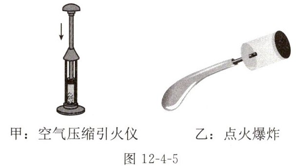 8. [教材素材题](2024泰州兴化校级模拟)如图12-4-5甲所示,活塞迅速下压后棉花燃烧,图乙中点火后盒盖飞出。“活塞压缩空气”和“使盒盖飞出”的两个过程中,对比能量转化情况、改变筒内气体内能的方式和筒内气体内能的变化三个方面,它们 ()