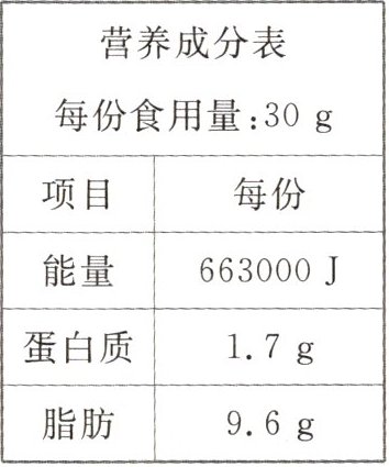 5. (2024泰州靖江一模)小明购买了某品牌的一盒薯片,部分参数如下表所示。利用如图12-4-9所示的实验器材估测其热值。用天平分别测出3g薯片和100g的水,用温度计测出水的初温为22℃,将3g薯片放入燃烧皿中,待其燃尽后记下水的温度为72℃,则水吸收的热量为______J,初步估算一下薯片的热值为______J/kg。小明根据薯片盒上的数据也计算出其热值为______J/kg,两者相差很多,请你帮助他分析原因可能是(写出一条):______。