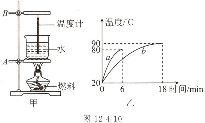 7. (2024南京一模)为了比较两种燃料的热值,小明采用如图12-4-10甲所示的两套完全相同的装置进行实验,烧杯内水的初温和质量相同,实验中忽略热量的损失。
