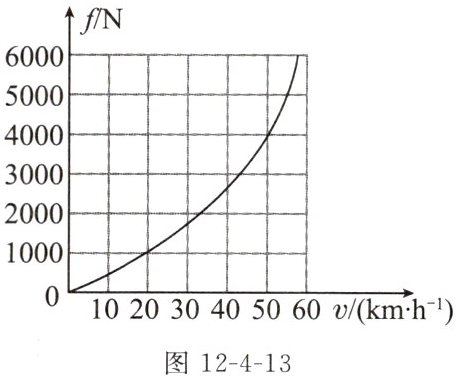 10. [跨学科实践]为实现碳中和的目标,我国大力开发新能源,减少碳排放! 为此投放大量的氢燃料公交车。经测试,某品牌氢燃料公交车在平直公路上匀速行驶时所受阻力与速度的关系图像如图12-4-13所示。某次测试时,该氢燃料公交车以50 km/h的速度匀速直线行驶3.6 min消耗了0.2 kg的氢燃料。