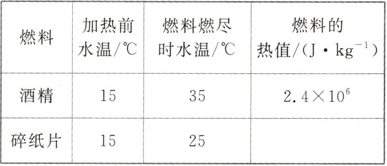 (3)实验数据记录如下表所示,根据表中数据,可知碎纸片的热值为______J/kg。