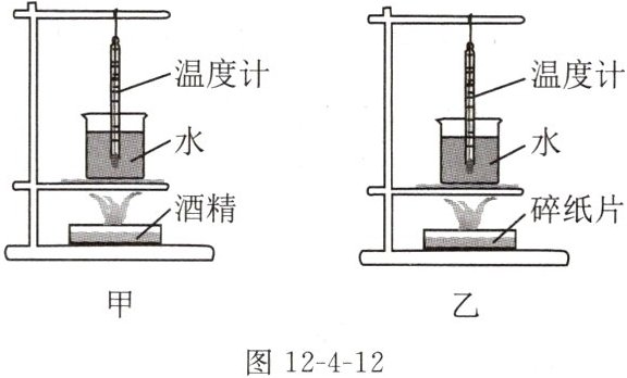 9. (2023常州溧阳期中)小明利用完全相同的装置(如图12-4-12甲、乙所示)来探究酒精和碎纸片的热值大小。