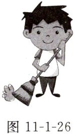 2. [教材素材题](2024无锡锡山区校级四模)如图11-1-26所示是同学用扫把扫地的情景,他的左手握住扫把柄的上端,右手向右推扫把柄时,此时扫把 ()