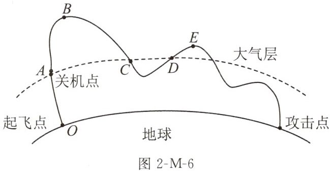 6. [科技前沿](2024南通模拟)如图2-M-6所示是我国“东风17”从起飞到击中目标的轨迹示意图,如果把大气层边缘看作水面,导弹飞行时就像在水面上“打水漂”,因此它突防能力强,难以拦截。关于此过程,下列说法正确的是()
