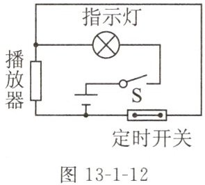 13. (2024 南通崇川区校级月考)如图 13-1-12 所示是一种定时课间音乐播放器装置的原理图,闭合开关 S,当“定时开关”处于闭合状态时,指示灯____(选填“会”或“不会”)亮,播放器____(选填“会”或“不会”)播放音乐;达到设定时间后,“定时开关”处于断开状态,播放器____(选填“会”或“不会”)播放音乐。