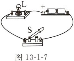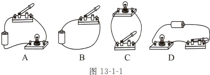 3. (2024 常州溧阳期中)在“怎样让一个灯泡亮起来”的活动中,小明用导线将图 13-1-3 中的元件连接起来进行实验。下列说法不正确的是 ()