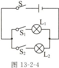 1. (2024无锡期中)如图13-2-1所示电路中,开关能同时控制两盏灯,且一盏灯的灯丝断了后,不影响另一盏灯的工作的电路是 (