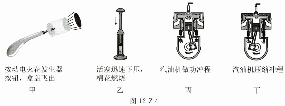 6. (2024南京模拟)水壶中的水烧开后,壶盖会向上跳动。如图12-Z-4所示的四个实例中能量转化与之相同的是 ()