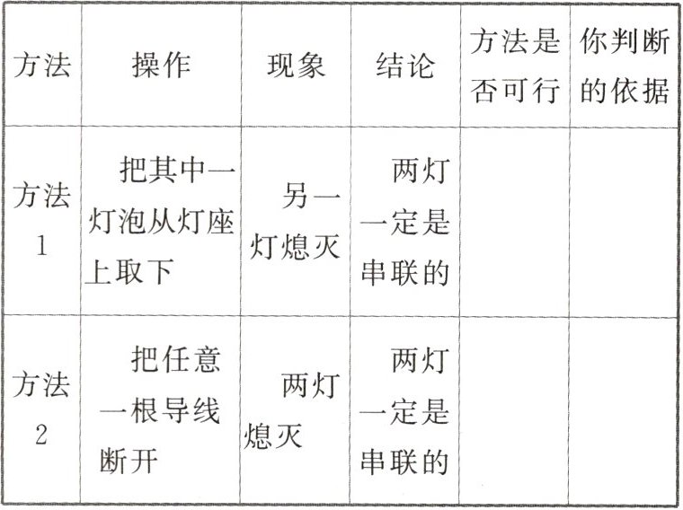 14. [科学推理](2022无锡期末)在某个电路中有两只灯泡,两灯泡都亮,但连线较乱。要判断该电路是串联电路还是并联电路,下列方法是否可行?