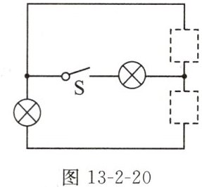 13. (2024扬州邗江区校级月考)如图13-2-20所示,试在两个虚线框内选填“电源”和“开关”的符号,并满足当开关都闭合时两灯组成并联电路。