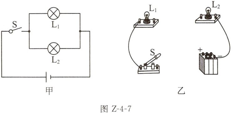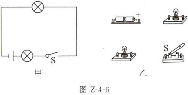 6. 按照如图Z-4-6甲所示的电路图,将图乙中各个元件连接起来。