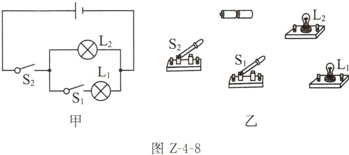 8. (2024无锡江阴期中)请根据图Z-4-8甲电路图,用笔画线代替导线(导线不能交叉),连接好图乙实物图。