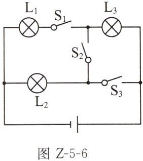 6. (2024 常州溧阳期中)在如图 Z-5-6 所示的电路中,当只闭合开关$S_{2}$时,灯泡$L_{2}$、$L_{3}$是____(选填“串”或“并”)联的;当开关$S_{1}$、$S_{2}$、$S_{3}$都闭合时,灯泡____短路,另两只灯泡是____(选填“串”或“并”)联的。