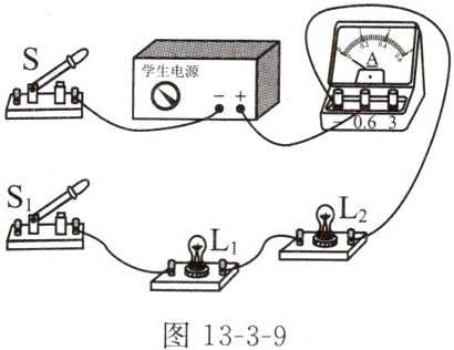 11. (2024 宿迁泗阳二模)请在图 13-3-9 中以笔画线添加 2 根导线,使灯$L_{1}与灯L_{2}$并联,电流表测量干路电流,开关 S 控制所有用电器,开关$S_{1}控制灯L_{1}$。
