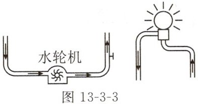 3. (教材素材题)如图 13-3-3 所示,水流通过水轮机,水轮机将____;与此类似,电流通过灯丝,能使小灯泡____。这里用水流类比电流,这种研究方法称为____法。
