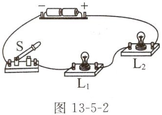 3. (2023宿迁三模)如图13-5-2所示,闭合开关S后,发现灯$L_{2}比L_{1}$亮,则通过两灯的电流$I_{1}与I_{2}$的大小关系是 ()
